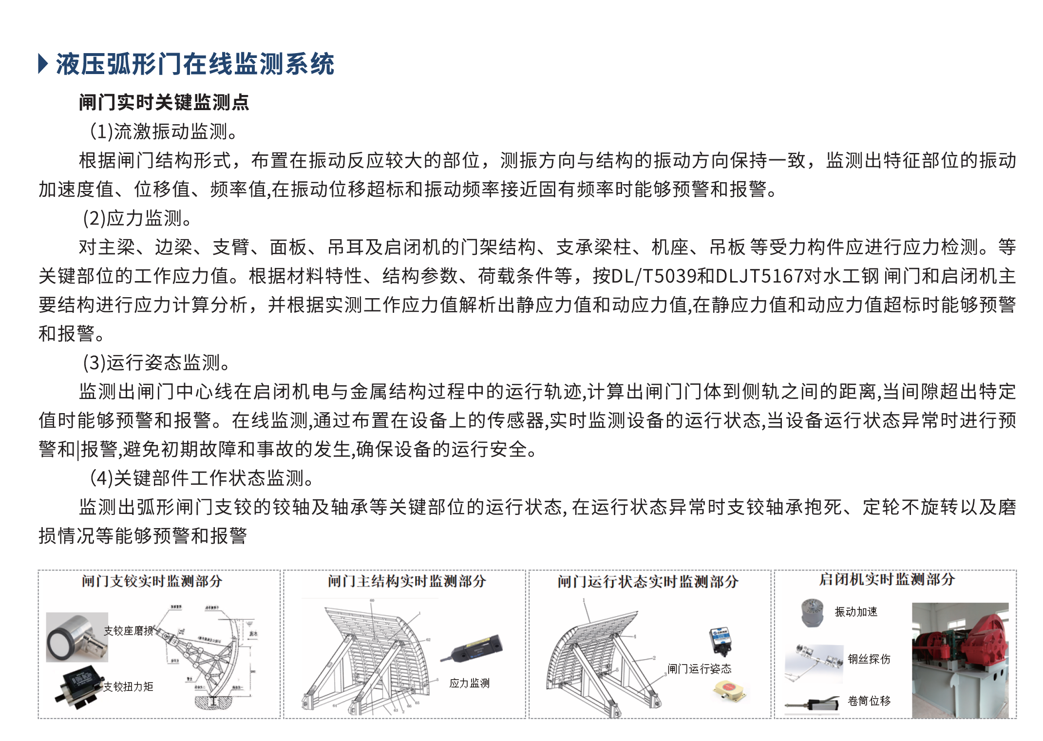 水工金屬結(jié)構(gòu)實(shí)時(shí)在線監(jiān)測的目的,是為研究水工金屬結(jié)構(gòu)失效的內(nèi)在原因,對(duì)水工金屬結(jié)構(gòu)的關(guān)鍵參數(shù)進(jìn)行實(shí)時(shí) 監(jiān)測,進(jìn)而建立起完整的水工金屬結(jié)構(gòu)實(shí)時(shí)在線監(jiān)測的安全評(píng)價(jià)體系。據(jù)相關(guān)數(shù)據(jù)統(tǒng)計(jì),水工金屬結(jié)構(gòu)設(shè)備失事破壞的 主要形式有強(qiáng)度破壞、振動(dòng)破壞、動(dòng)力失穩(wěn)、結(jié)構(gòu)變形、主要部件失效等。