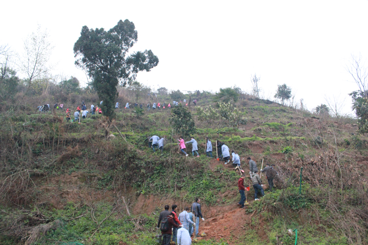 上午8:30,微特電子員工及員工家屬在后山籃球場集合,分發(fā)植樹工具及小樹苗。