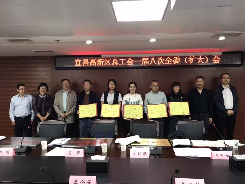 ▲4月25日,宜昌高新區(qū)總工會(huì)召開一屆八次全委(擴(kuò)大)會(huì)議,微特技術(shù)公司員工劉艷喜獲2018年度“高新工匠”榮譽(yù)稱號(hào)。(上圖左五)